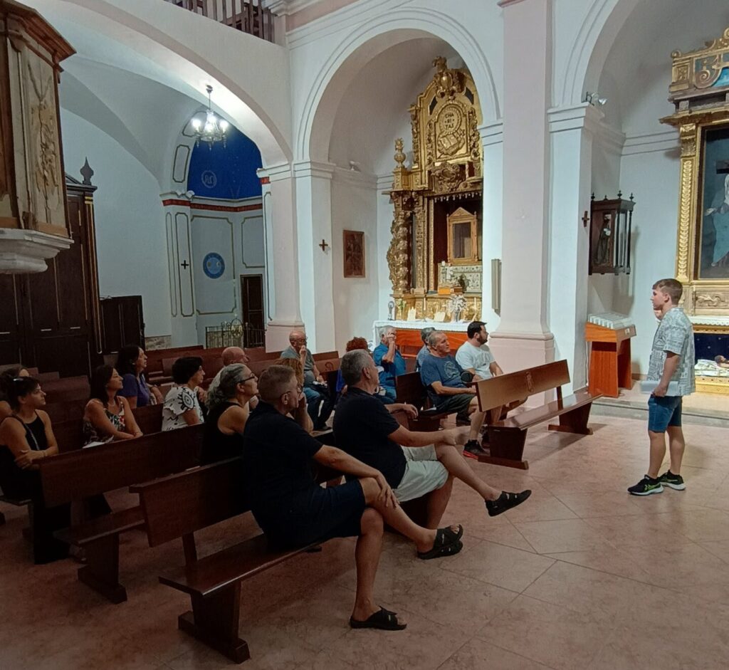 Concili de Trento, retablística, ‘salomonisme‘ i escultors i pintors de primer ordre del període —com ara Urbano Fos, Vicente Gozalbo i els Ochando—, van ser alguns dels temes protagonistes en aquest interessant i didàctic itinerari. A més, la ruta va finalitzar amb la visualització de la petita col·lecció de làpides sepulcrals ceràmiques sortides dels forns de la Reial Fàbrica del comte d’Aranda, totes elles procedents de la parroquial. Una excusa per aproximar-se a aquesta modalitat artística dins de la manufactura comtal no tant coneguda com les seues afamades vaixelles i serveis de taula.